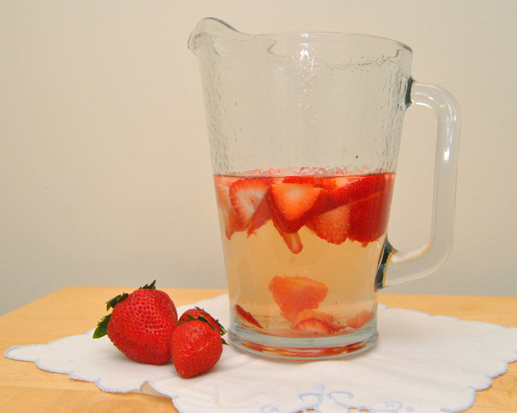 - Add cooled strawberry syrup, strawberry slices and orange slices to wine.