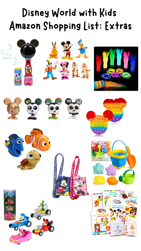 Bath/pool toys: This is definitely an “extra,” but my kids loved having a few bath toys for the room, and they can also be fun to take to the pool. HERE are a few cute Disney options.