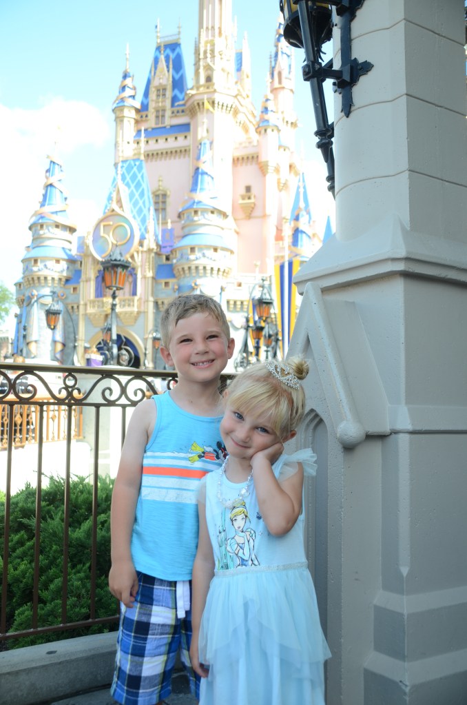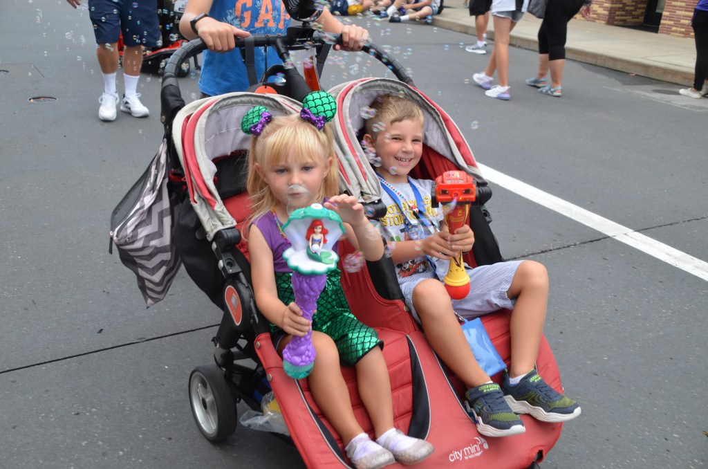Stroller: If your kids are under 6, I say rent/bring the stroller. (Over 6, you might still consider it based on your child.) Yes, you need to deal with it getting off/on transportation and you’ll need to park it before rides. But it is well worth it to not have my kids whine about their legs being tired. (I have no desire to carry a kid in that heat.) They can take little naps in it, AND it’s somewhere to put your stuff! I rented from Kingdom Strollers twice in 2021 and had great experiences. I used a double (my kids were 3 and 4) umbrella stroller for the airport and then switched to City Mini Double for the parks.