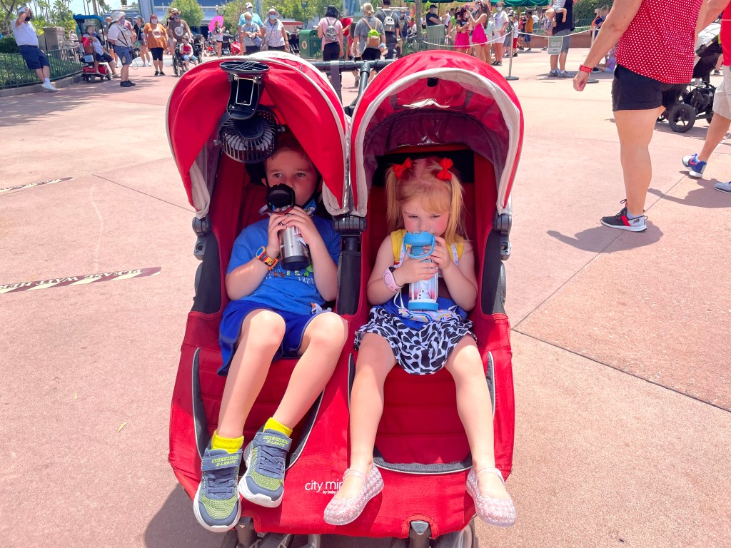 Stroller Fan: I recommend at least one stroller fan. I actually prefer two! It was so nice to point one at the kids and one at myself because you work up a SWEAT pushing a stroller around the parks.