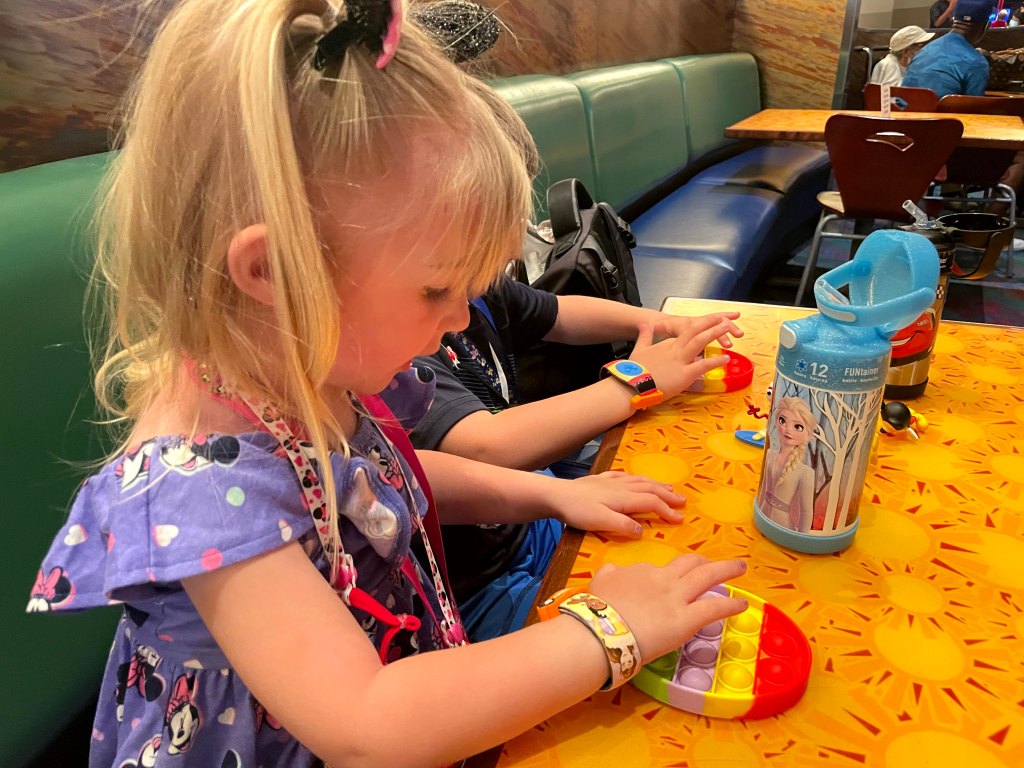 Disney Figures: A set like THIS could be good for playing on the plane or waiting in lines. You can usually find figures at Dollar Tree, too. And both of my kids love Disney Doorables! (These are small, so better for kids 3 and up.)