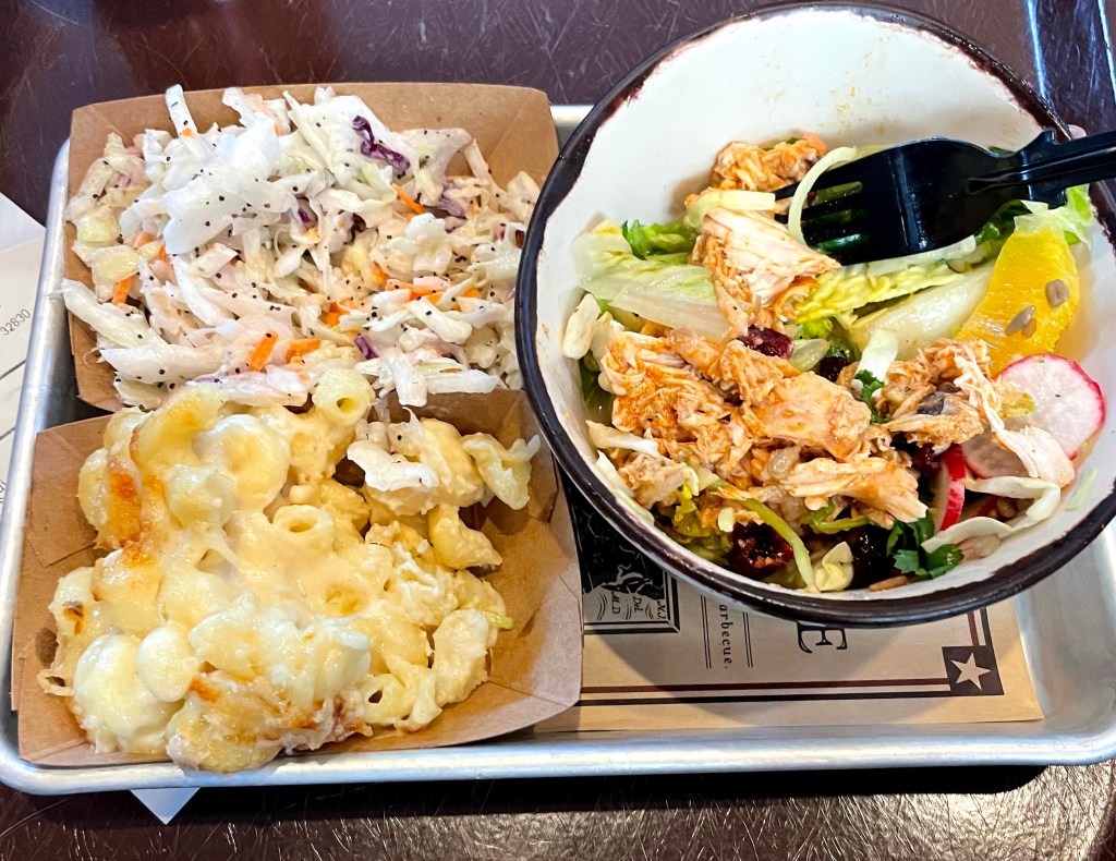 - Food portions tend to me large in Disney World. For my 2 kids, I found it made more financial sense to have them share one adult meal (usually chicken fingers) rather than each get their own kids meal. And I would often order one kids meal for myself! (The photo above is of a kids meal at Regal Eagle Smokehouse in EPCOT.)